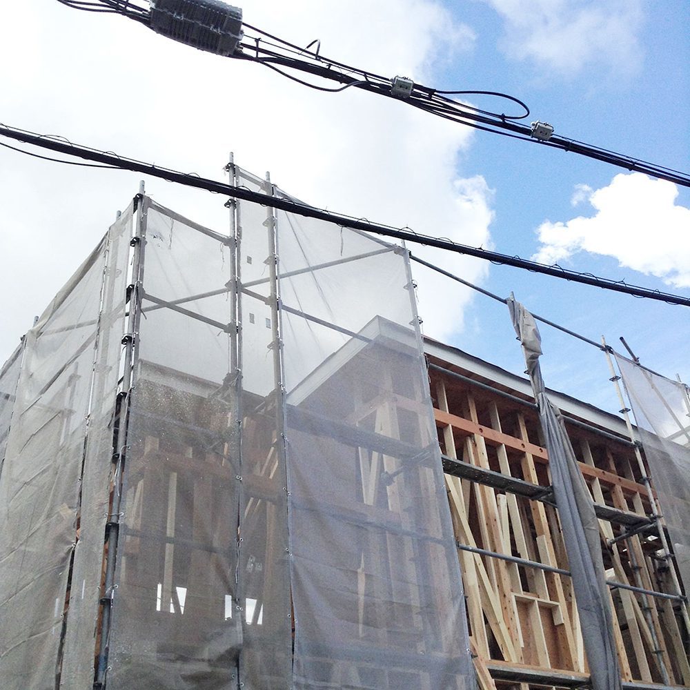 この日は中も見せていただきましたが、上棟式が終わったところでしたので、太い柱や筋交いなどが縦横無尽に走っているのがしっかり確認できましたよ。