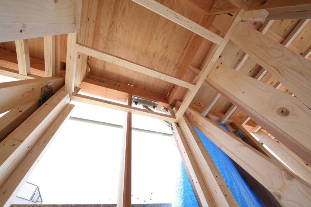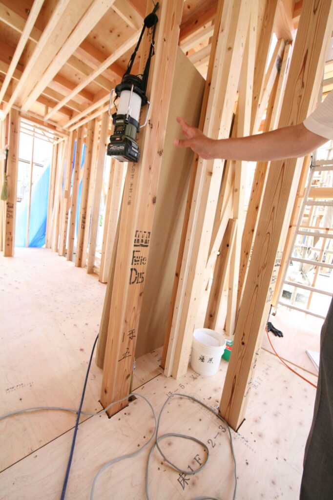 上棟式が無事終わり、建物の骨組みなど今しか見れない部分について、シオンハウジングからご夫妻に説明をいたしました。一部内容をご紹介します。