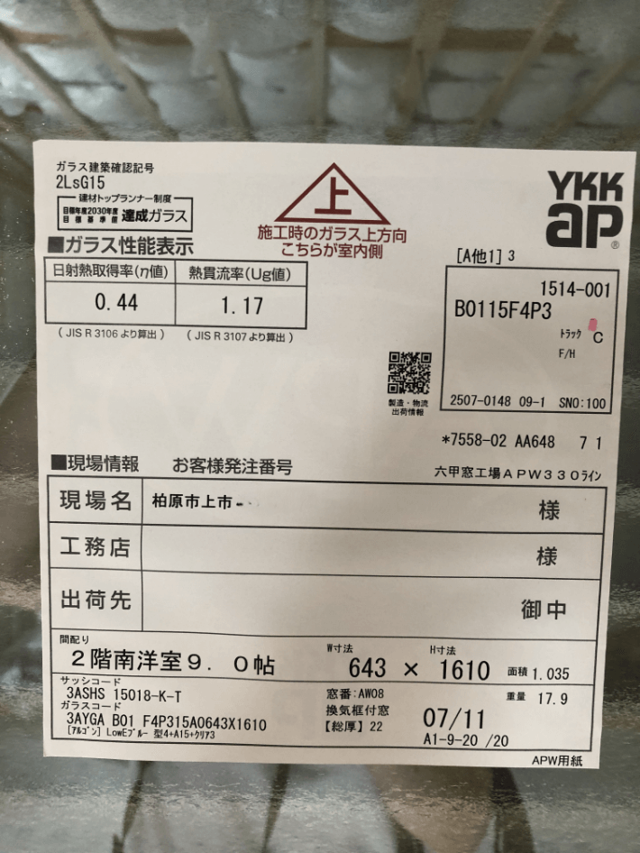 次に2階の様子です。ぴっちりと断熱材が詰め込まれていますね。また、壁材、屋根材はもちろんのこと、窓ガラスの大きさや断熱性能も、家の断熱等級に関わる重要な要素です。