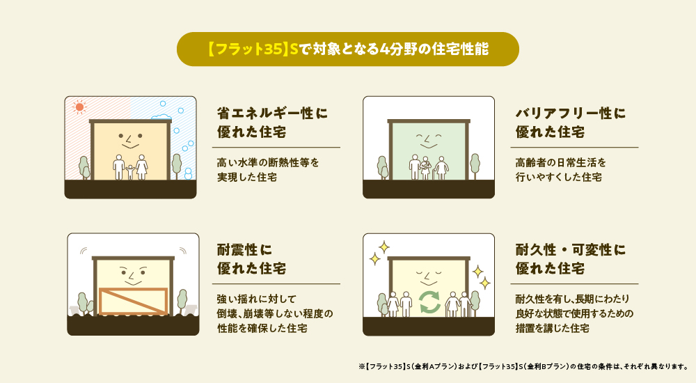 フラット35Sは、省エネ性や耐震性など一定の基準を満たした住宅を対象に、借入当初5~10年間の金利を引き下げる優遇制度です。長期固定金利型ローン「フラット35」に上乗せされる形で、質の高い住宅取得をサポート。将来の金利上昇リスクを抑えつつ、安心の住まいづくりを実現します。