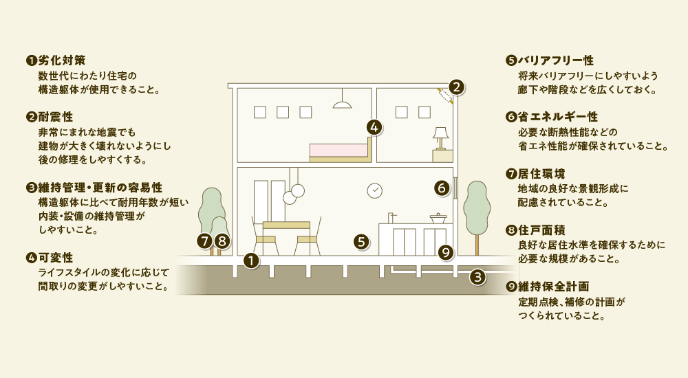 「長期優良住宅」とは、日本の住宅政策の一つで、長期間にわたり良好な状態で使用できる優れた性能を持つ住宅のことです。2009年に施行された「長期優良住宅の普及の促進に関する法律」にもとづき、一定の基準を満たし、所管行政庁の認定を受けた住宅が「長期優良住宅」となります。