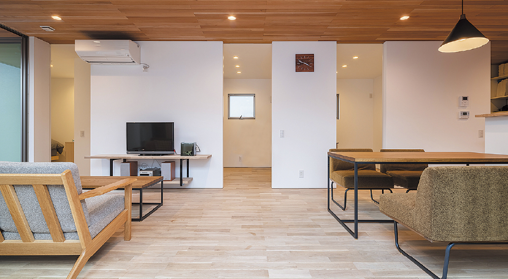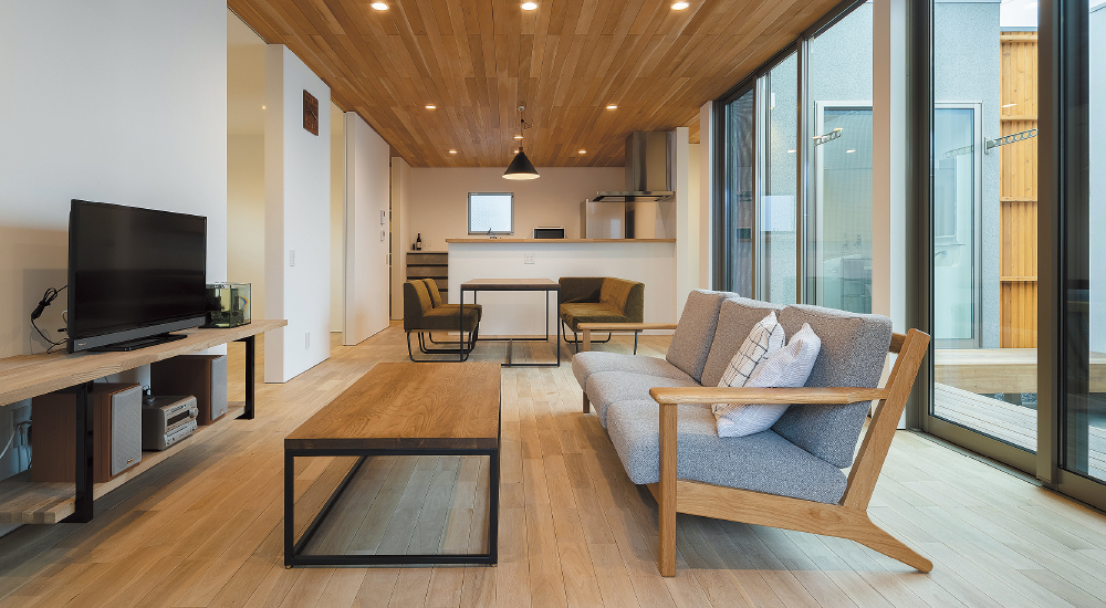 LUXURY こだわりの素材と洗練されたデザインの邸宅 木のぬくもりに包まれた家 木のぬくもりに包まれた家 特徴 木材を取り入れた内装で五感に優しい住空間を実現 プライバシーを確保しながら室内に光を取り入れる間取り設計 家の中でも外を感じられるインナーテラス