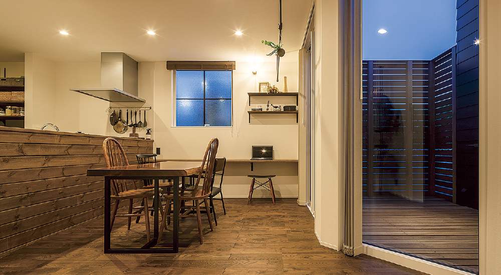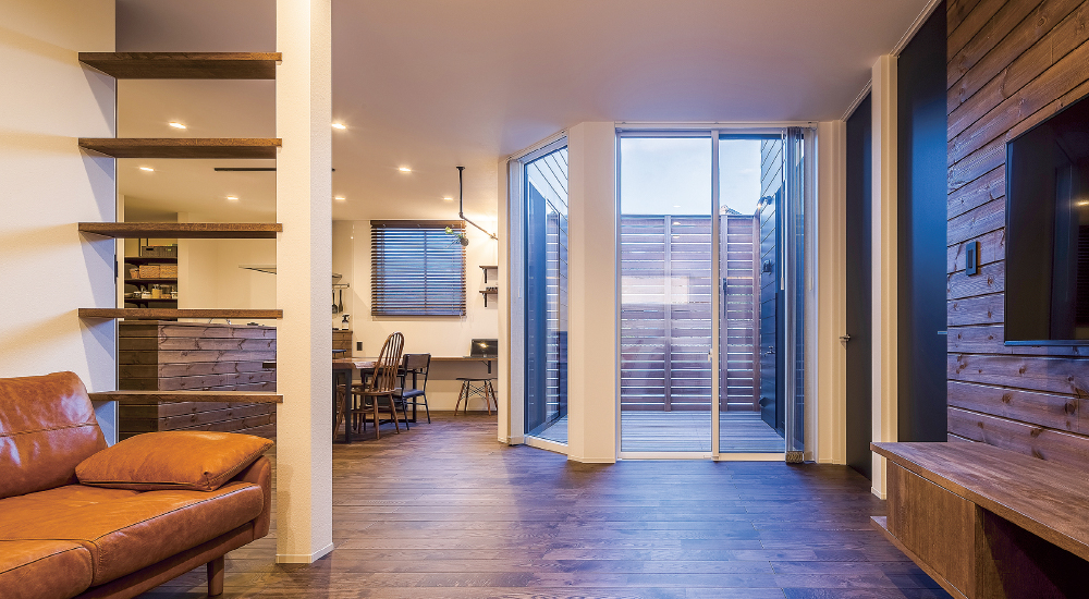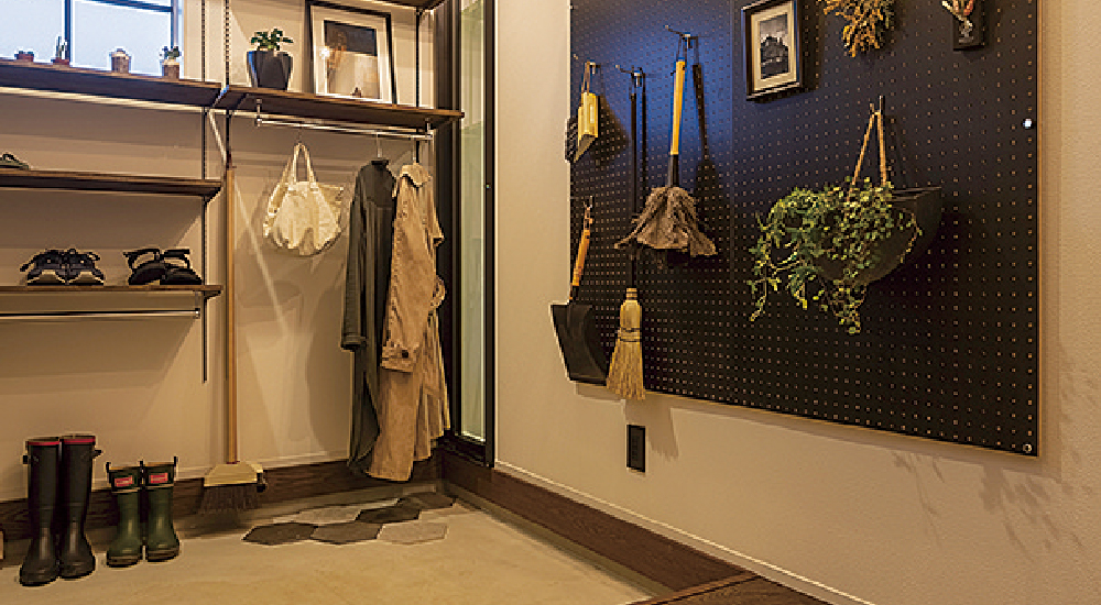 ACTIVE 外と内をゆるやかに繋ぐ土間のある暮らし アイデア次第で使い方が無限に広がる アイデア次第で使い方が無限に広がる 特徴 濡れた靴やウェアの一時置き場としての便利な土間付きの玄関 土間には耐久性・防汚性の高い床材を採用し掃除が簡単 収納だけでなく見せる収納(ディスプレイ)にも対応
