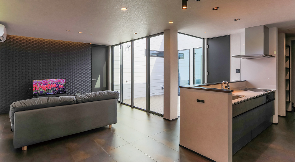 ACTIVE 大収納を実現するマルチな土間 収納で整う毎日の暮らし 収納で整う毎日の暮らし 特徴 収納量に応じた可動棚やロッカー式収納の提案 中庭から光が差し込む明るく開放的な家 内外観に合った素材選びでデザイン性を両立