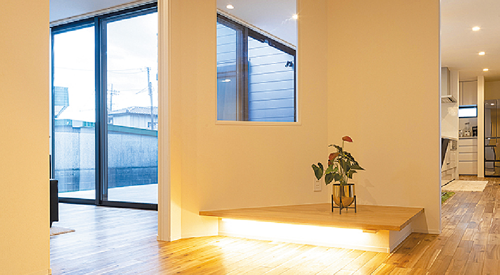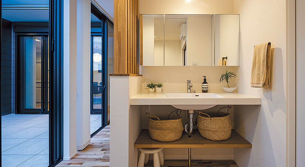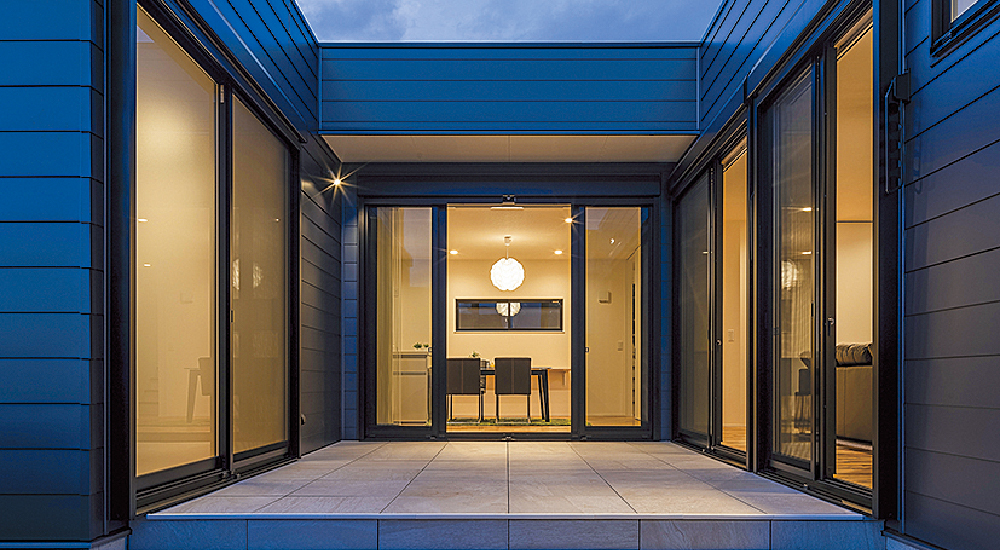 RELAX 開放感と落ち着きを両立する上質な暮らし 日々の暮らしに光と風の開放感 日々の暮らしに光と風の開放感 特徴 中庭とシームレスにつなぐことで、室内にいながら感じられる開放感 中庭から取り込む柔らかな自然光による採光設計 中庭をプライベートテラスや屋外リビングとしても活用できる